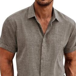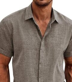COOFANDY Men’s Linen Shirts Short Sleeve Casual Shirts